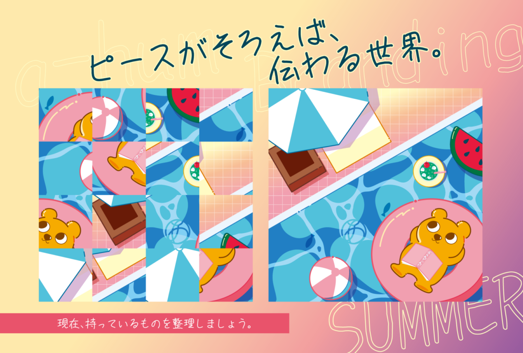 デザインは、スライドパズルの世界観に合わせて、夏らしく少し懐かしいシティポップ風に仕上げました。